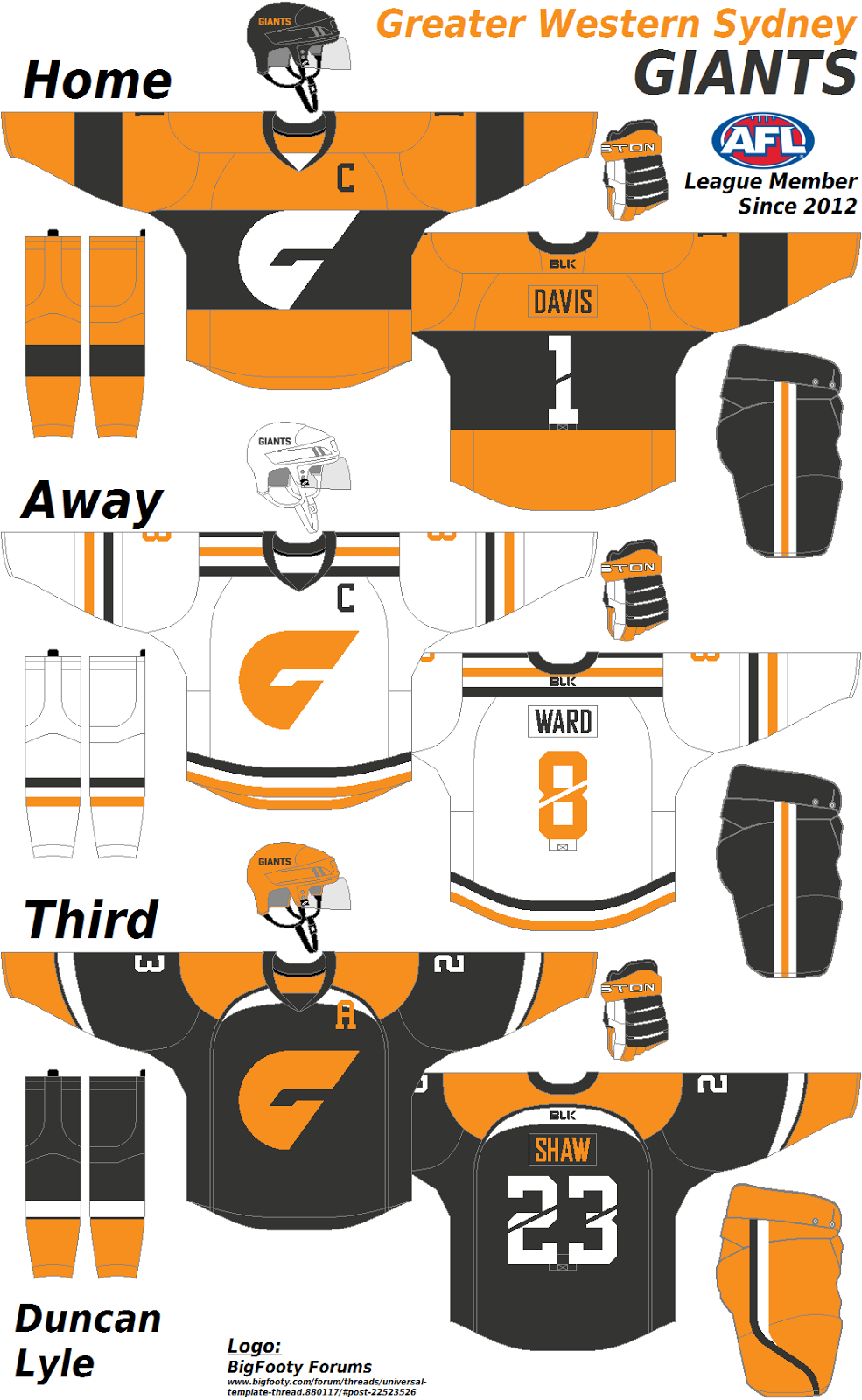The rainbowy striping doesn't look bad on the arms and hem, even the pants. But I'm not a fan of it on the yoke. I say make the yoke solid blue and this is a good third jersey. Not a fan of the yellow/light orange trim on the numbers, It'd look better gray or white, whichever the crest is outlined with. Also, I think a blue, white, or gray third jersey would be a better look. I want to like the orange, but it's just not sitting well with me.